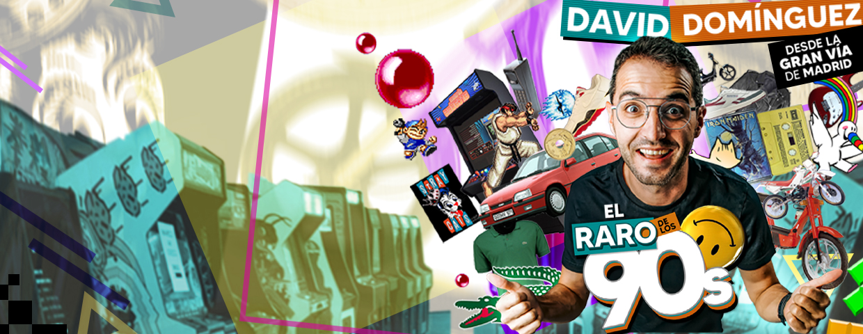 David Domínguez es un tío feliz (pero no feliz porque sea feliz, sino porque se entrena todos los días para serlo). «El raro de los 90» es un espectáculo de humor en el que David Domínguez da un repaso en tono irónico, simpático y gamberro a sus vivencias en la maravillosa década de los 90.